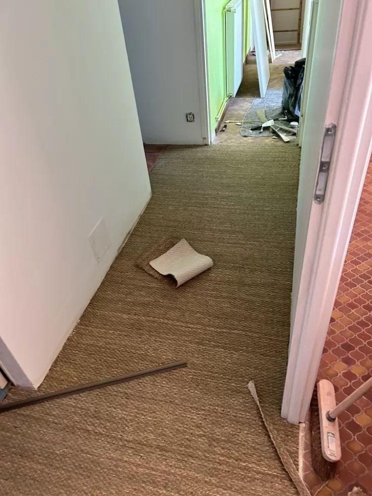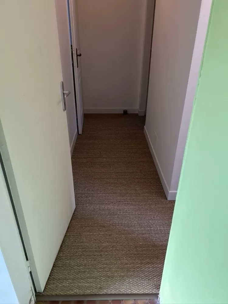 Pose d'un jonc de mer dans un couloir et dans la chambre compris la finition par la pose de plinthe et de seuil de porte et mise en peinture des murs.