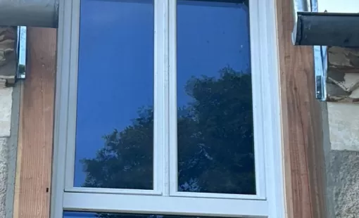 Votre menuisier à Saint léon sur isle à effectué la pose de menuiserie en PVC blanc en applique sur des chiens assis.